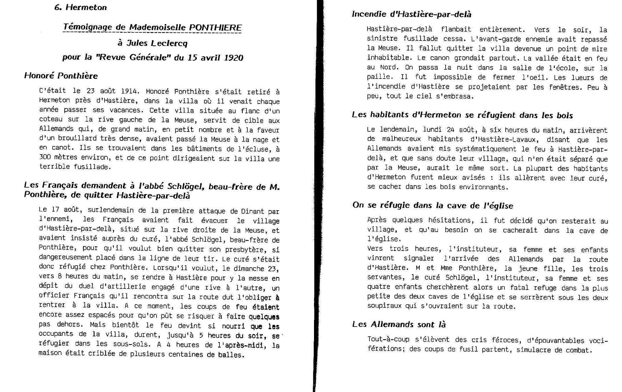 A Hermeton, la population doit fuir dans les bois mais le village n'échappe pas au pillage, à la destruction et aux tueries le 23 août 1914 : 20 habitants sont sommairement fusillés.